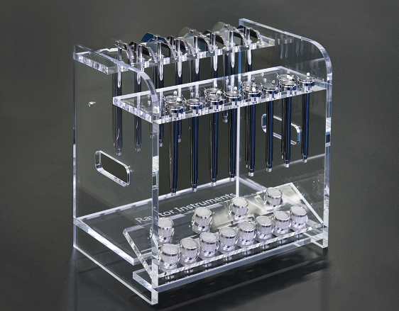 锐拓溶出配件晾干展示架适用于溶出搅拌桨、溶出转篮、篮轴和手动取样针的晾干、存放和展示。